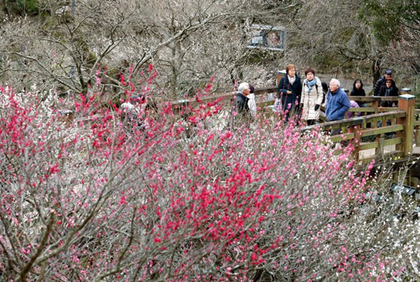 人民網(wǎng)東京2月14日電 據(jù)《朝日新聞》網(wǎng)站報(bào)道,春季來臨,日本靜岡縣熱海市著名賞梅圣地--熱海梅園近日舉行“梅花節(jié)”,吸引了眾多游客。